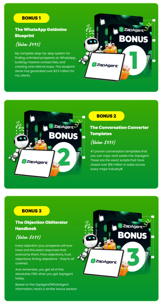 When you grab ZapAgent through my affiliate link, you don’t just get the software — you unlock a premium bonus bundle designed to fast-track your success. These bonuses are exclusive — you won’t find them anywhere else.